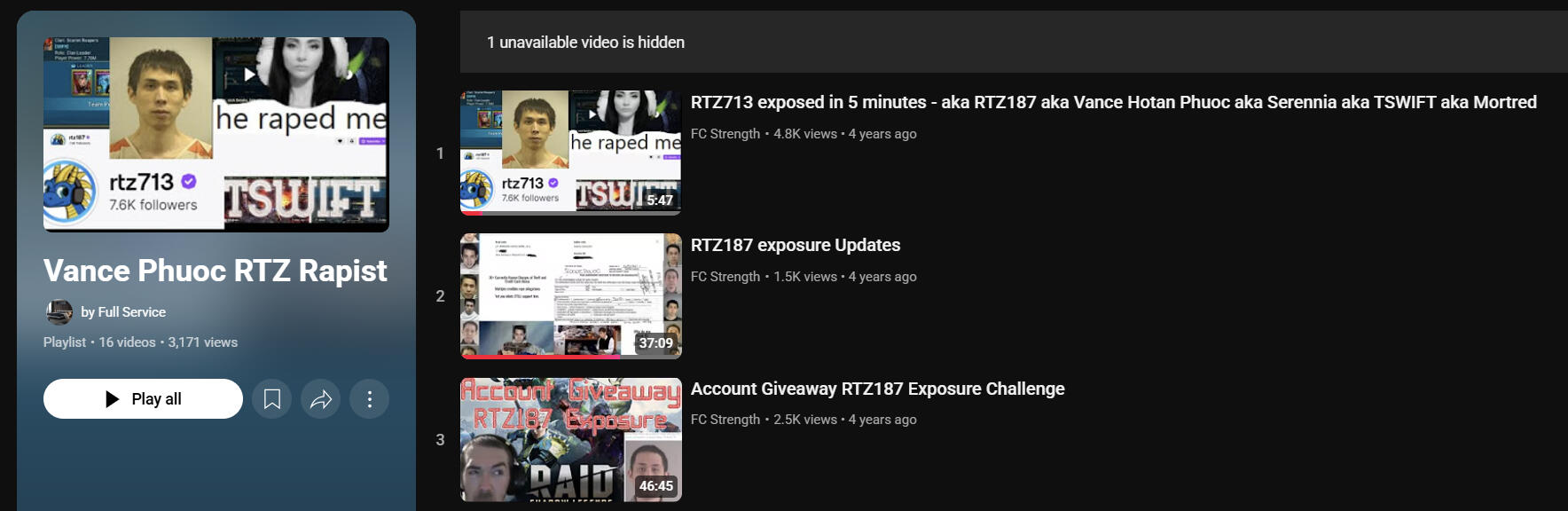 In 2018 Vance used his twitch platform in ESports scene of Raid Shadow Legends to prey on women. He was also first in the world at World Of Warcraft. He was famous in the esports scene.He was eventually cancelled by the entire community after so many women came forward of him raping or stealing from them.