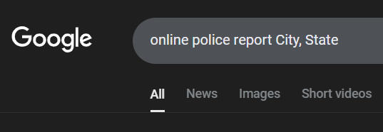 If you are located outside of these cities and need to report Vance in another city, please go to google and search "Online Police report CITY, STATE"